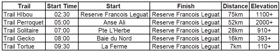 Trail de Rodrigues Entries Closed